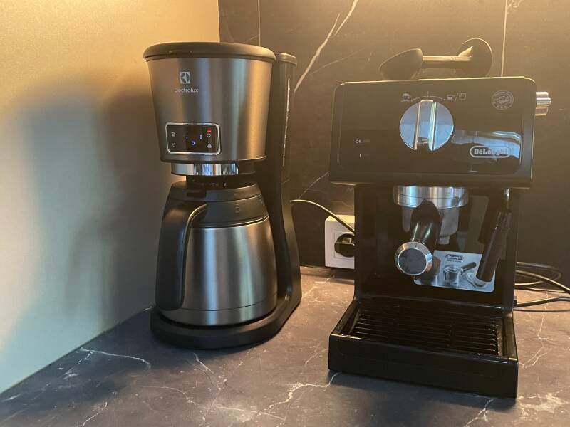 In de open keuken is er een vaatwasmachine, koffiezetapparaat, De'Longhi Espressomachine, een koelkast, airfrayer, croque-ijzer en het nodige keukengerei.